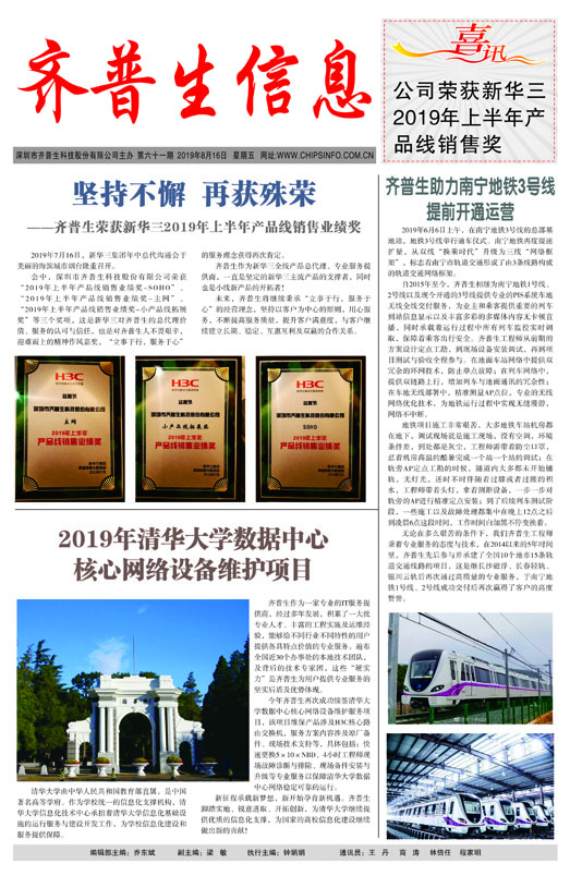 堅(jiān)持不懈 再獲殊榮 ------齊普生榮獲新華三2019年上半年產(chǎn)品線銷(xiāo)售業(yè)績(jī)獎(jiǎng)