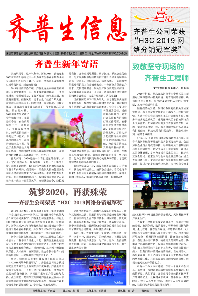 筑夢(mèng)2020,再獲殊榮 ——齊普生公司榮獲“H3C2019網(wǎng)絡(luò)分銷冠軍獎(jiǎng)”